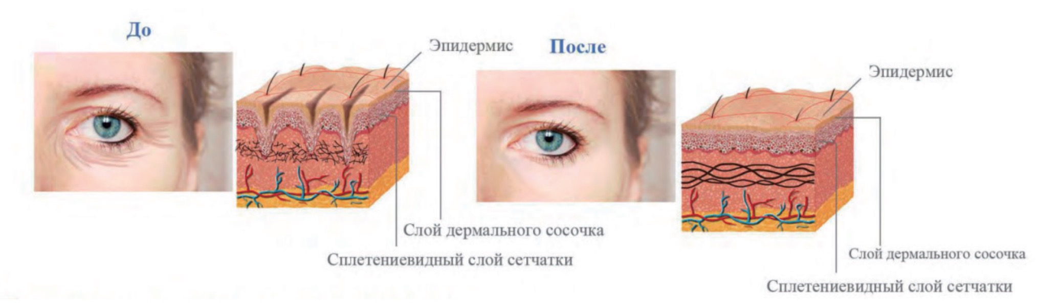 Целевая ткань это вода, нет ограничений по типу кожи (по Фицпатрику I-VI).