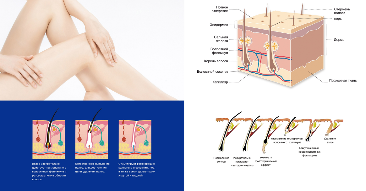 Применение:Лазерная эпиляция + дополнительное омоложение